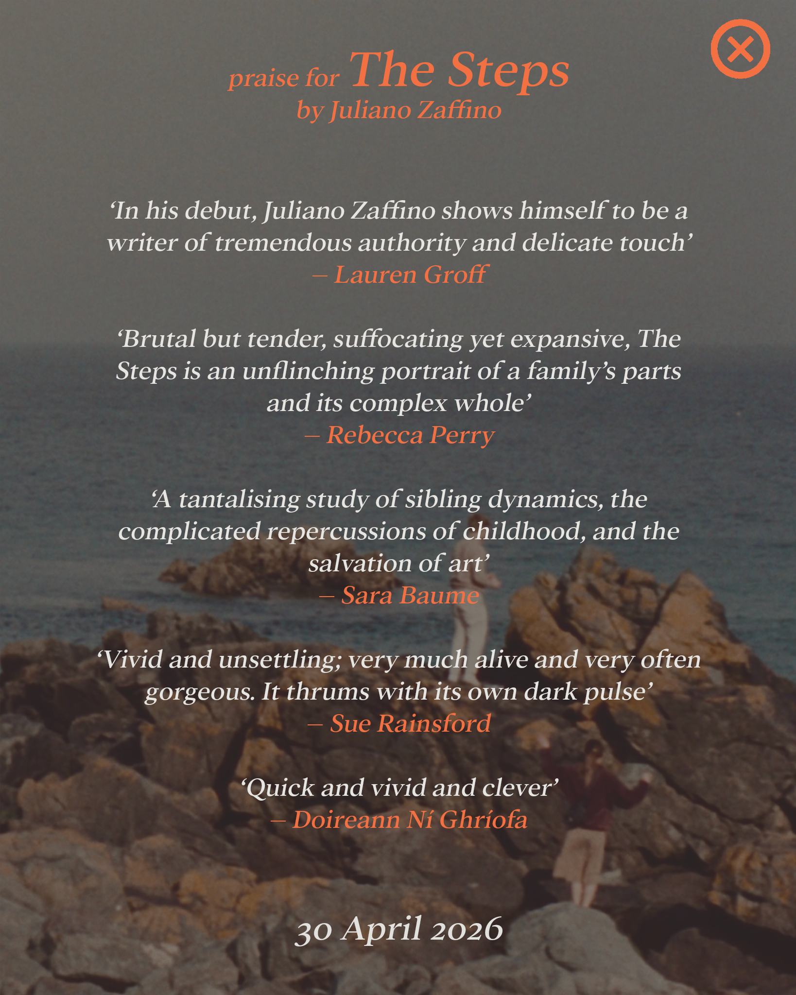 Juliano Zaffino’s debut novel, The Steps, is published by Tramp Press in the UK and Ireland on 30 April 2026. Scroll down to read more about the book, advanced praise for it, links to purchase, and information for events.